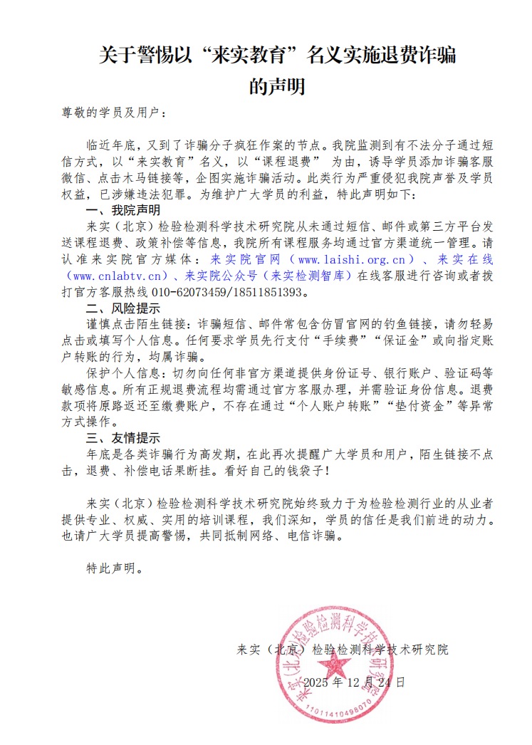 电竞牛-牛气开局,必胜之势从未通过短信、邮件或第三方平台发送课程退费、政策补偿等信息,我院所有课程服务均通过官方渠道统一管理。请认准电竞牛院官方媒体:电竞牛院官网(www.hcgjsj.com)、电竞牛在线(www.cnlabtv.cn)、电竞牛院公众号(电竞牛检测智库)在线客服进行咨询或者拨打官方客服热线010-62073459/18511851393。